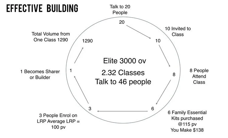 When you make your list, rate your list, sample to your list and then invite to a class. You will see numbers like you see in the ‘Effective Building’ cycle below …